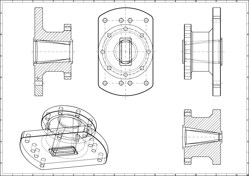 Jiné strojní součásti - fotogalerie Jiné strojní součásti – fotogalerie Ukázky konstruovaných částí strojů: přechodové těleso těleso adaptéru ozubené řemenové kolo ložiskový domek rotační adaptér rozvaděč redukční těleso tělo stavění kleština konzola hřídel příruba čep úchyt unašeč řetězové kolo hřídelový pastorek prizma kontaktní plíšek kontaktní pružina pružina kontaktu
